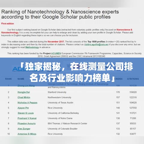 随着科技的进步和数字化时代的到来,在线测量技术日益受到重视,应用领域广泛,在线测量公司以其专业的技术实力和精准的服务赢得了市场的青睐,本文将探讨当前在线测量公司的排名及其行业影响力。