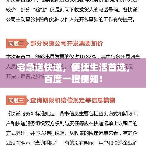 随着互联网技术的飞速发展和电子商务的繁荣,快递业务已成为日常生活中不可或缺的一部分,在众多快递品牌中,"宅急送快递"以其高效、便捷的服务赢得了广大消费者的青睐,本文将通过百度搜索,带您了解宅急送快递的各个方面,为您的生活带来更多的便捷。