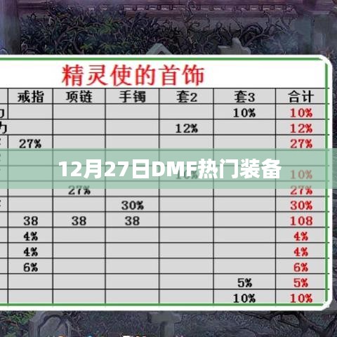 随着游戏产业的蓬勃发展,玩家们对于游戏中的装备需求日益旺盛,本文将为大家介绍在12月27日备受玩家关注的DMF热门装备,这些装备在游戏性能、外观、实用性等方面都有着出色的表现,成为了众多玩家的追求目标。